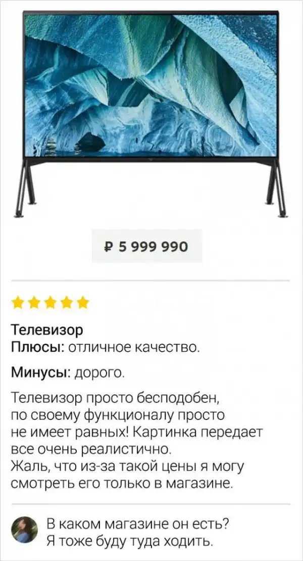 Писать отзывы - это полноценная профессия. Человек должно емко, понятно и детально описать товар и услугу, чтобы потенциальный покупатель смог сделать для себя верное решение. А некоторые "отзовики" практикуются еще и в остроумии. Их комментарии сложно назвать объективными и полезными, но читать их намного веселее. Давайте посмотрим.