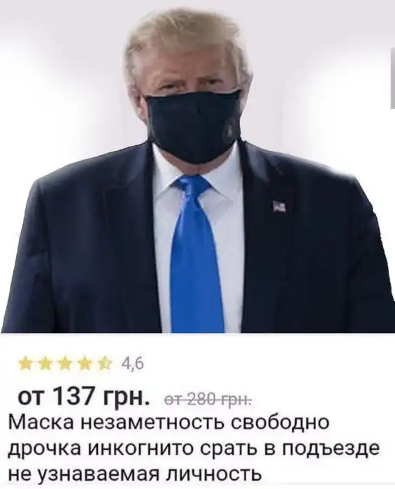 Дональд Трамп впервые за время пандемии появился на публике в защитной маске. И что вы думаете... за считанное мгновение он стал мемом в России. Лучшие работы членов гильдии фотошопа и интернет-троллинга перед вами!