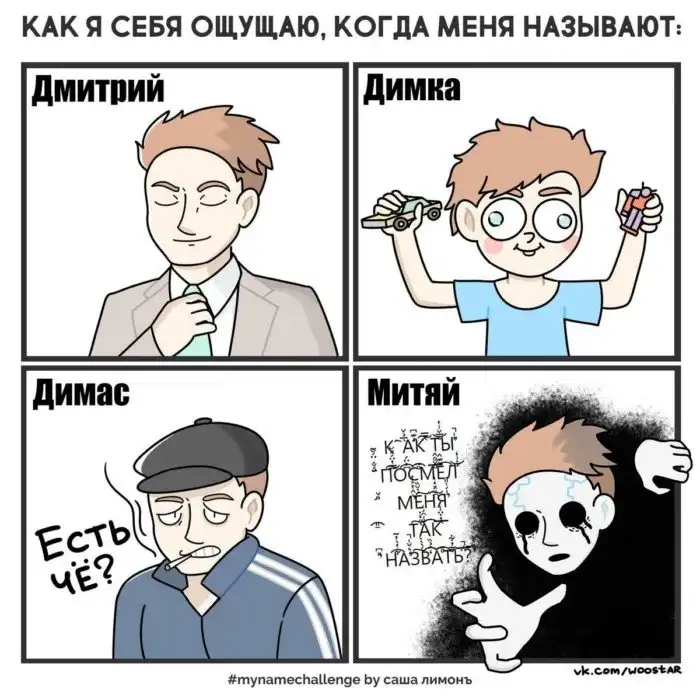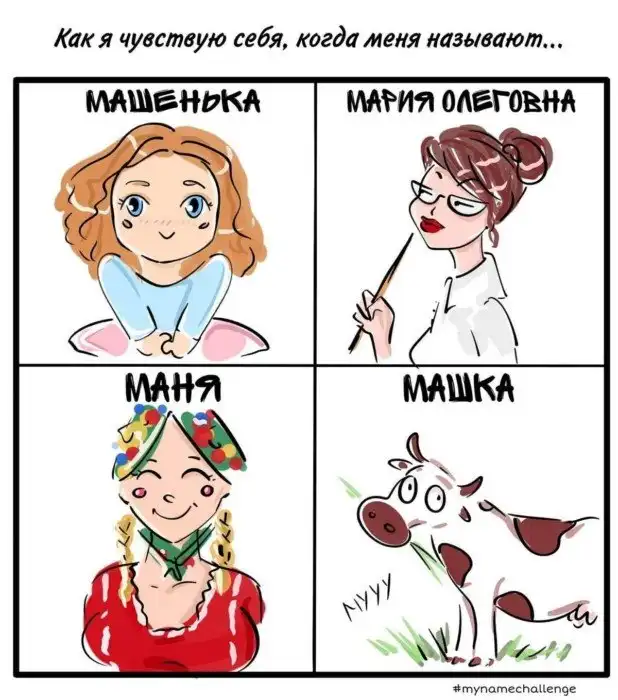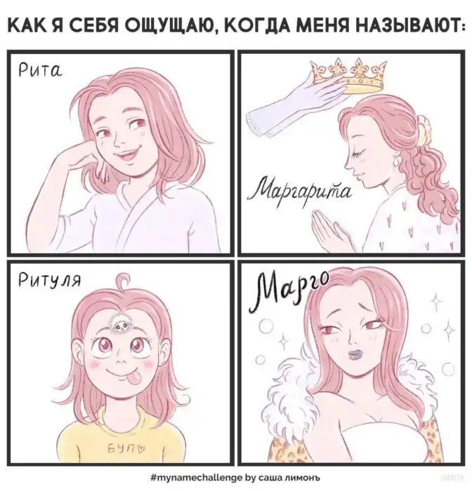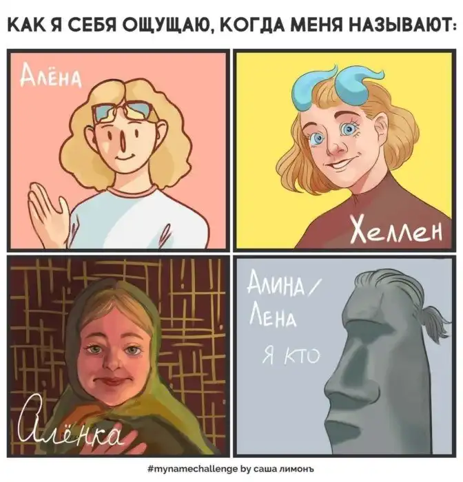 Для любого человека его имя — самое дорогое и близкое к сердцу, что только может быть. Поэтому любые коверканья и или изменения его формы влекут за собой последствия разной степени тяжести. Художница Саша Лимонъ нарисовала, как она ощущает себя, когда её называют Саней, Сандрой или Александрой, а потом превратила это в настоящий флешмоб.