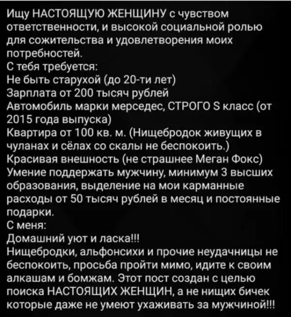 Парни в Интернете далеко не всегда умеют нормально знакомиться. Они выкладывают такие объявления, что задаешься вопросом: "Как такое безумие вообще пришло в голову?". Однако почитать это довольно весело.