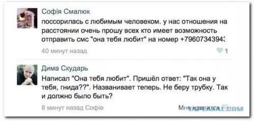 Люди ежедневно пользуются социальными сетями, где не только переписываются, но и создают какие-либо публикации. Порой - довольно странные и смешные, поэтому предлагаю поднять себе настроение и почитать.