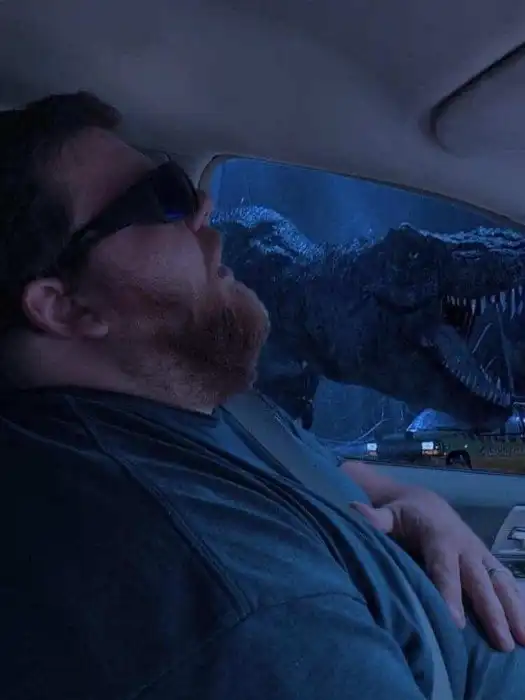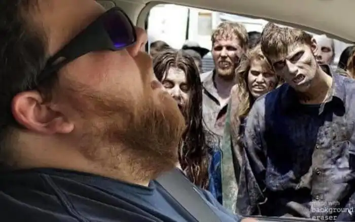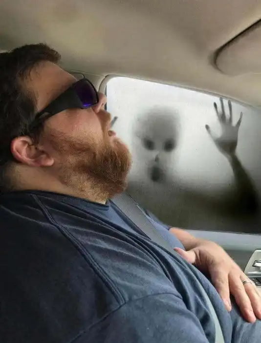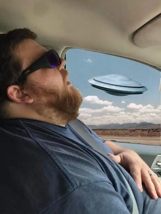 Американка Шейри Оверман вместе с мужем ехала в гости к родственникам. Ее муж, который вел машину, решил вздремнуть в пути. Коварная Шейра сфотографировала благоверного - и отправила фото в социальную сеть, попросив друзей и подписчиков отфотошопить снимок, доказав мужу, что он многое пропустил по пути. И друзья не подвели!