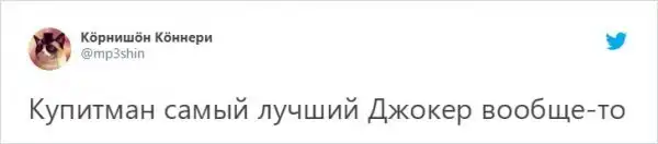 Парень хотел сделать себе крутую татуировку с Джокером. Но результат вышел совсем не таким на какой он рассчитывал. Вместо супер-злодея в исполнении Хита Леджера ему набили доктора Купитмана из сериала "Интерны". Своим фейлом он поделился в Твиттере и до слез рассмешил пользователей. При этом они утешили парня и сказали, что татуировка все равно вышла отличной.