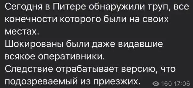Питер отличается от других городов России поребриком, парадной и расчленёнкой