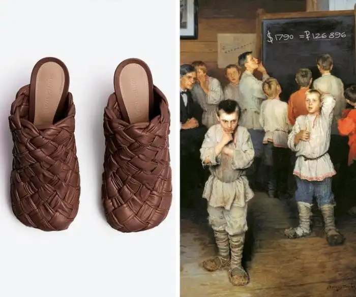 Крестьянские дети ахнули от стоимости лаптей Воttega Veneta в пересчете на рубли. $ 1 790