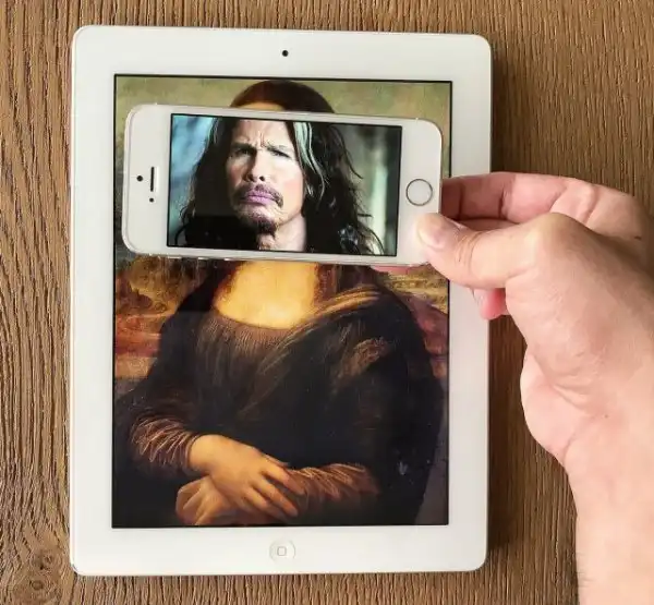 «Смартфон — это то, что мы все носим с собой весь день. Он позволяет мне делать такие фотографии спонтанно на месте в момент, когда мне приходит идея. Здесь нет „Фотошопа“ или какого-либо постпродакшн. Я просто ношу с собой два телефона».