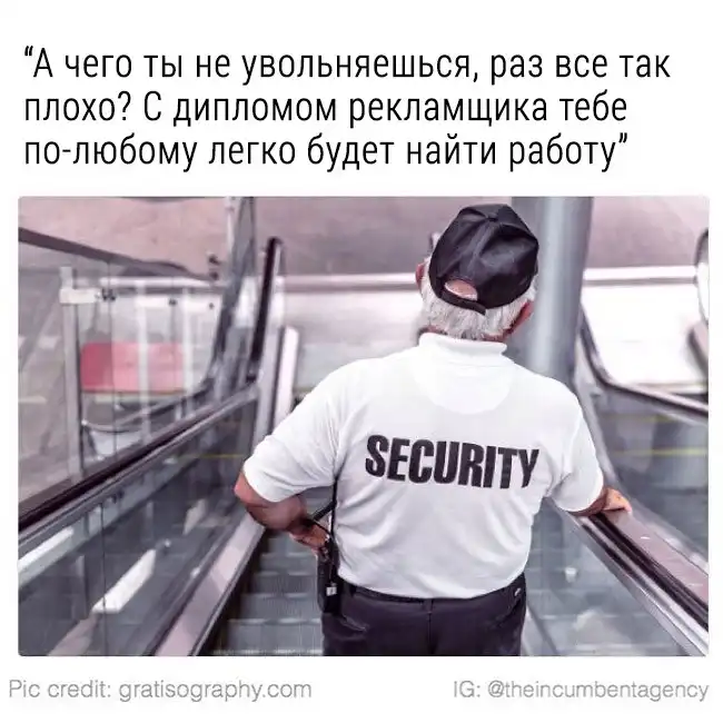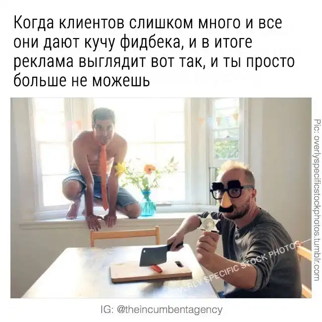 Все мы уже устали от клишированных стоковых фото. Однако The Incumbent Agency, магазин мерча, вдохновленного индустрией рекламы, нашел им смешное применение и превратил в отличные мемы о жизни в рекламном агентстве.