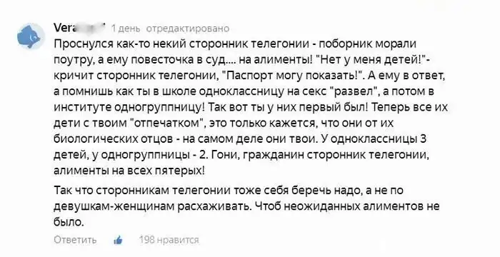 Кстати, а вы знали, что телегония работает и в обратную сторону. Я не до конца осознал это, но в комментариях ерунды ведь не скажут?!