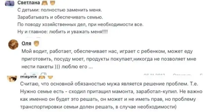 7. Девушки на форумах обсуждают, что же должны делать мужья