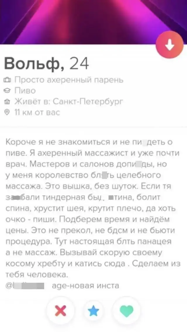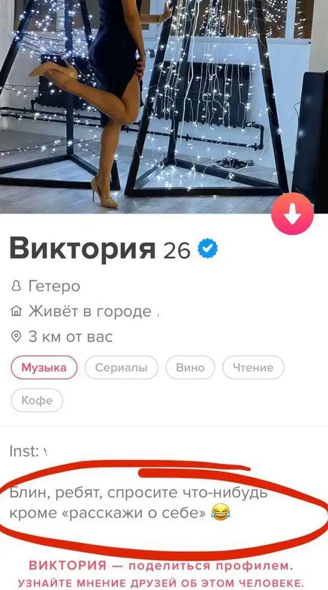 Чаще всего в Сети можно найти трешовые описания из популярного сайта знакомств. Но попадаются и нормальные анкеты, которые можно спокойно посмотреть и решить: подходит к тебе человек или нет. А там уж разбирайтесь сами!