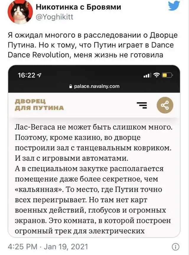 Накануне блогер Алексей Навальный выпустил расследование о дворце в Гелинджике, который по его данным, принадлежит Владимиру Путину через различным посредников. Он показал богатое убранство дома, а также рассказал историю создания дома. Пресс-секретарь президента уже отреагировал на эти данные, сказав, что Путин не имеет отношение к этому дворцу. В Сети отреагировали на виды и слова в этом расследовании.