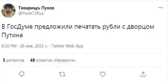 Первый зампред комитета Госдумы по экономической политике Сергей Калашников (ЛДПР) предложил разместить портрет президента Владимира Путина на купюре в 5 тысяч рублей. Реакция соцсетей не заставила себя долго ждать.