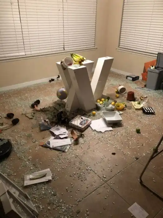 11. Показалось, что кто-то в 5.30 въехал в нашу кухню на машине. Но нет, это стеклянный стол внезапно разбился
