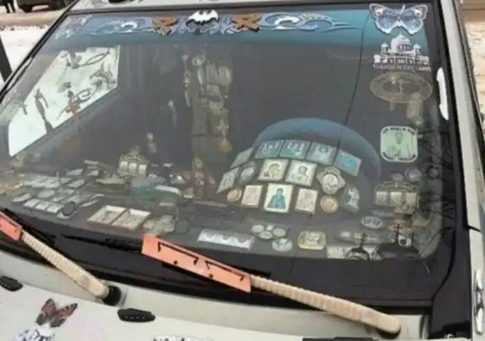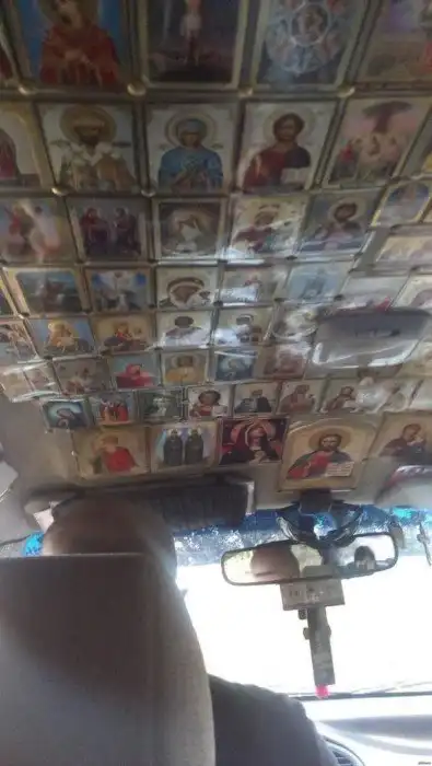 Санитайзеры с ликами святых и полный "водительский фарш".
