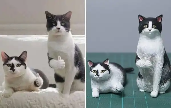 Что он делает? Он просматривает самые известные в Сети картинки с котиками, собачками и прочей живностью, и выбирает из них самые неуклюжие и забавные. А затем воссоздает эти картинки в скульптуре - делая фигурки настолько странными, насколько это возможно.