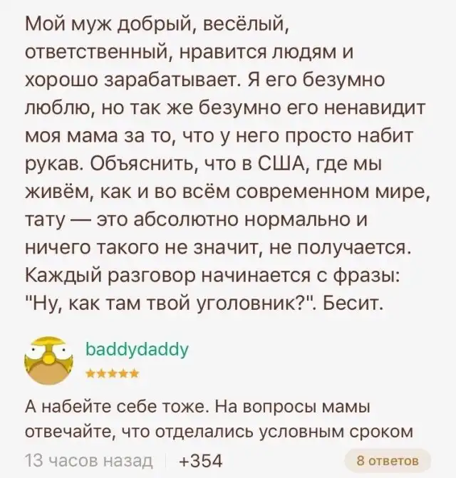 Не останавливаясь и не обращая ни на кого внимания, "яжематери" продолжают громко заявлять о своих "особых" правах. Правда, это вызывает у пользователей социальных сетей лишь смех. Не обходят в Интернете стороной и тему отношений - хоть тема и сложная, но и в ней найдется место для юмора.
