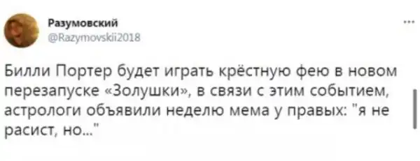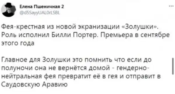 Интернет-сообщество несколько дней кипит по поводу того, что в экранизации "Золушки" Билли Потртер сыграет гендерно-нейтральную фею-крестную. Пользователи не могли пройти мимо такой информации и отреагировал на это.