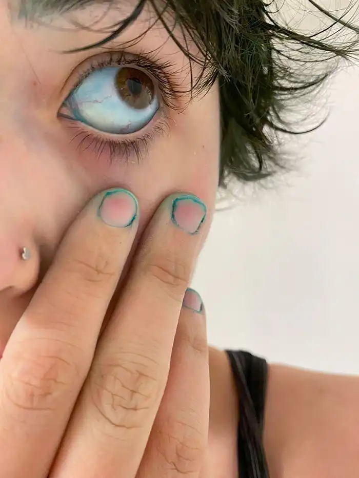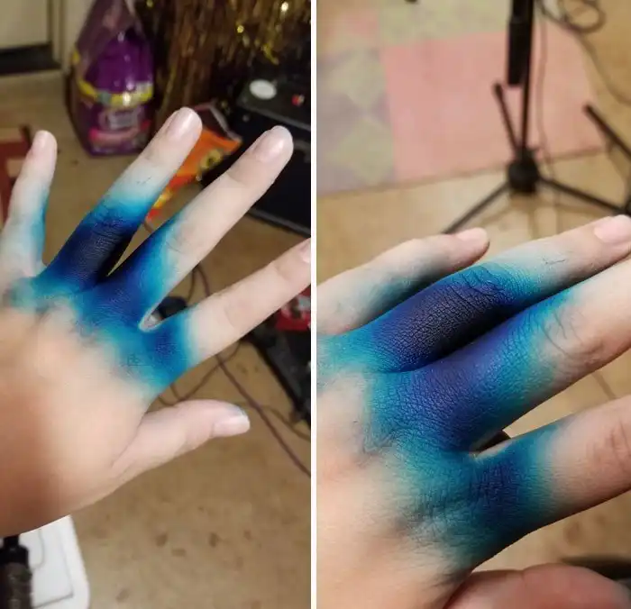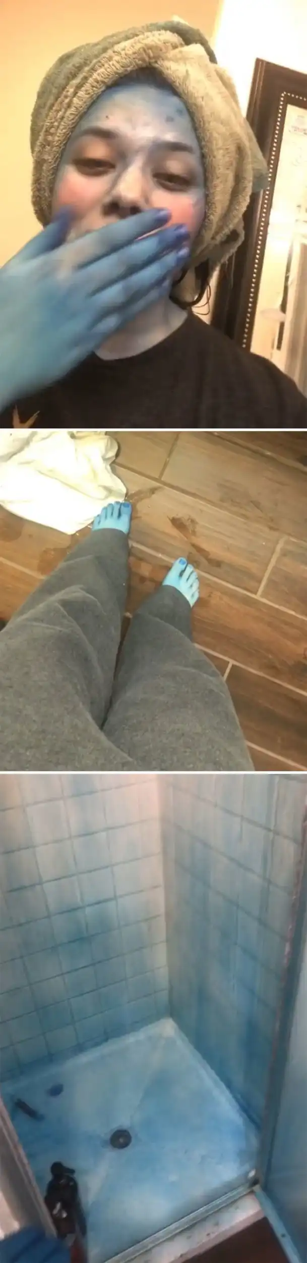 21. "Краска взяла все, кроме волос. Включая язык, ногти и глаза"