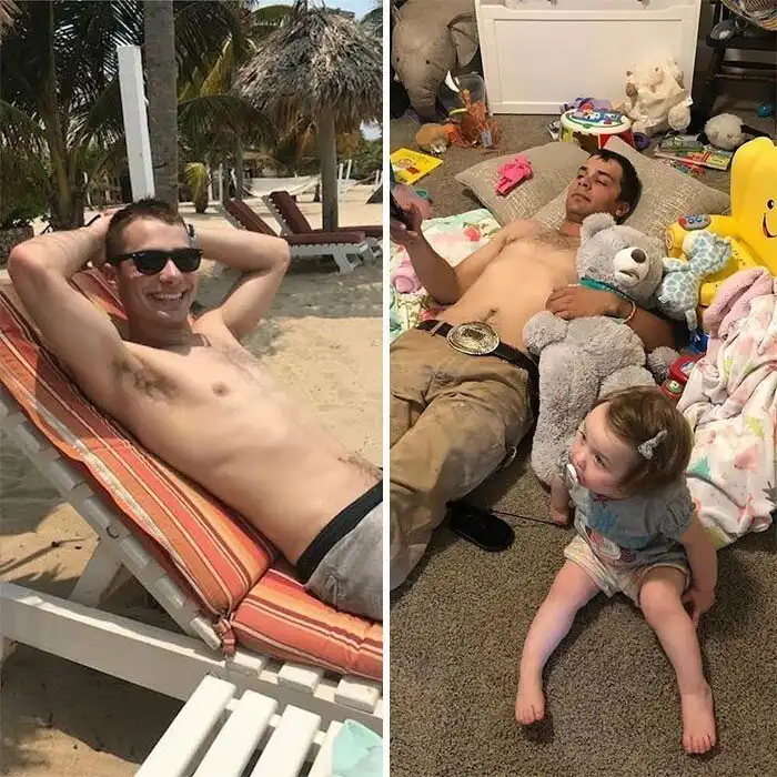Фотографии из серии "до и после" отлично показывают контраст между бездетной беззаботной жизнью и жизнью родителей, главная забота которых теперь не гламурные тусовки и развлечения, а их несносные, но такие милые и любимые малыши.