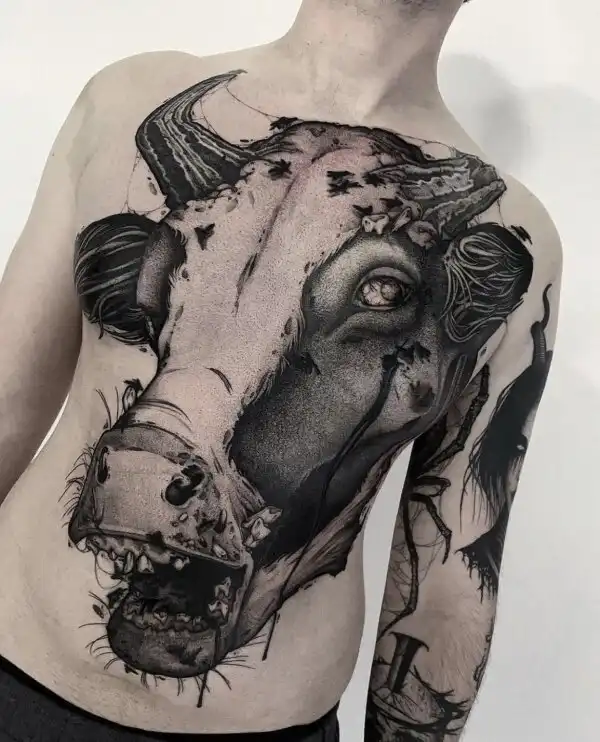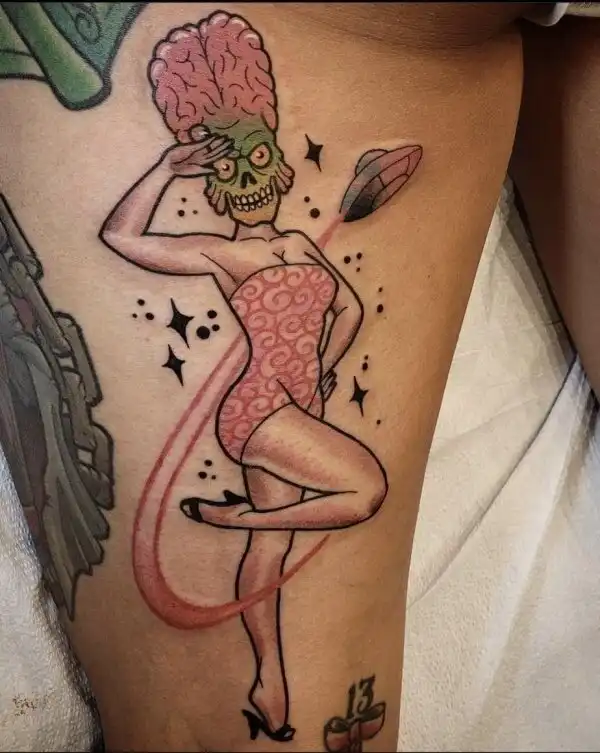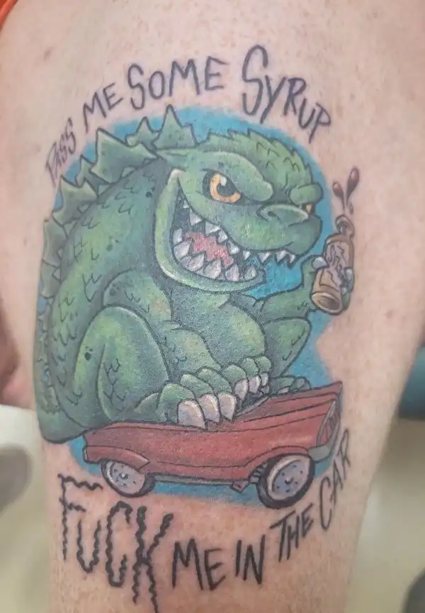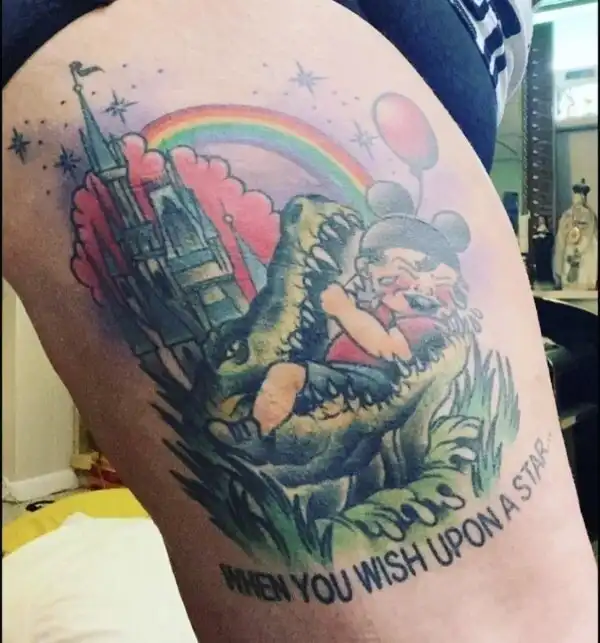 Эти татуировки - прекрасные примеры ужасного вкуса, но вполне приличного исполнения. Выполнены они в целом профессионально, но эстетическая составляющая оставляет желать лучшего. И главный вопрос - как кому-то пришло в голову нарисовать на себе такое?