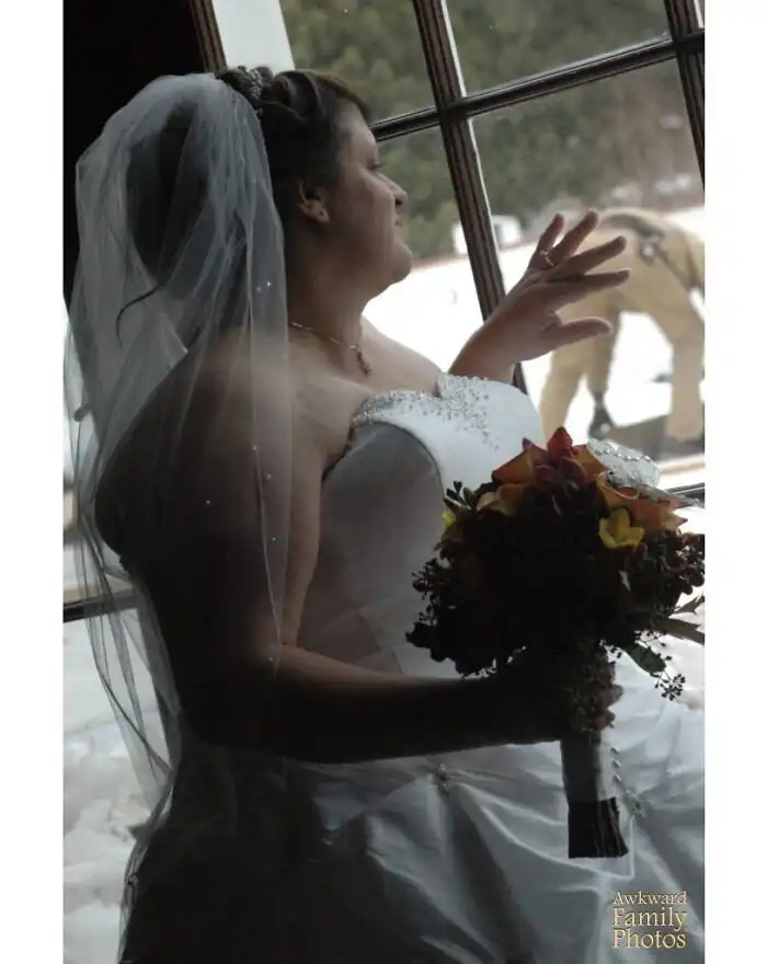 15. "Я была фотографом на свадьбе сестры мужа и заметила рабочих на фоне уже после того, как сделала несколько фото. К счастью, у нее отличное чувство юмора"