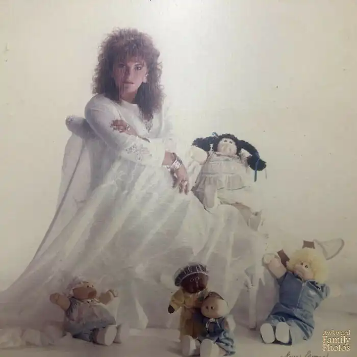 24. "Это мое фото из выпускного альбома. Мама почему-то решила, что будет здорово, если я сфотографируюсь со своей коллекцией кукол"