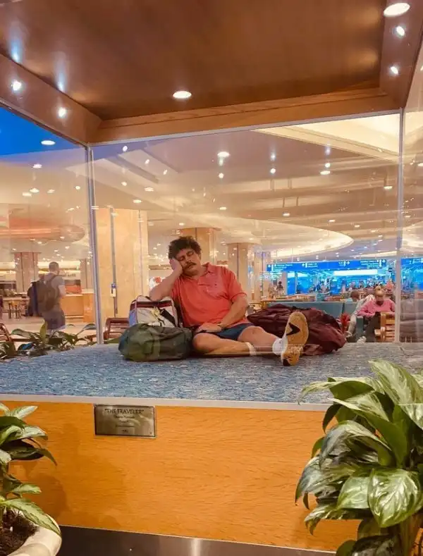 Этот парень узнал, что его рейс перенесли, и просто подключил свою приставку к телевизору