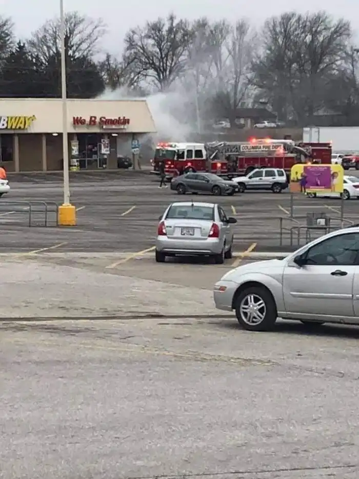 13. Вывеску барбекю-ресторана, из которого идет дым, можно перевести как "Мы курим"