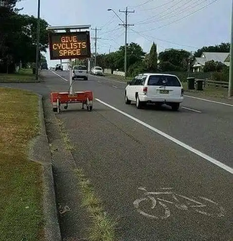 17. Знак, призывающий людей "дать пространство велосипедистам", занимает то самое пространство