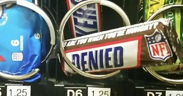 24. Надпись на батончике, который застрял в торговом аппарате: "Отклонено"