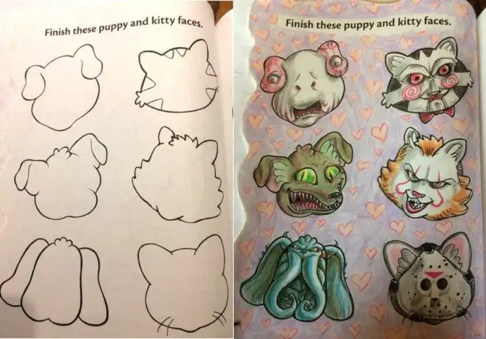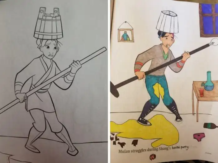 Почти все дети любят раскраски. Но и многие взрослые не могут пройти мимо этих чёрно-белых картинок, которые так и ждут, что кто-то наполнит их цветами. Правда раскрашивают взрослые их очень своеобразно, домысливая свои детали и превращая милые сюжетики в совсем уж не сказочные и довольно жёсткие. Мы собрали для вас примеры случаев, когда взрослые добрались до раскрасок и сделали всё на свой лад.