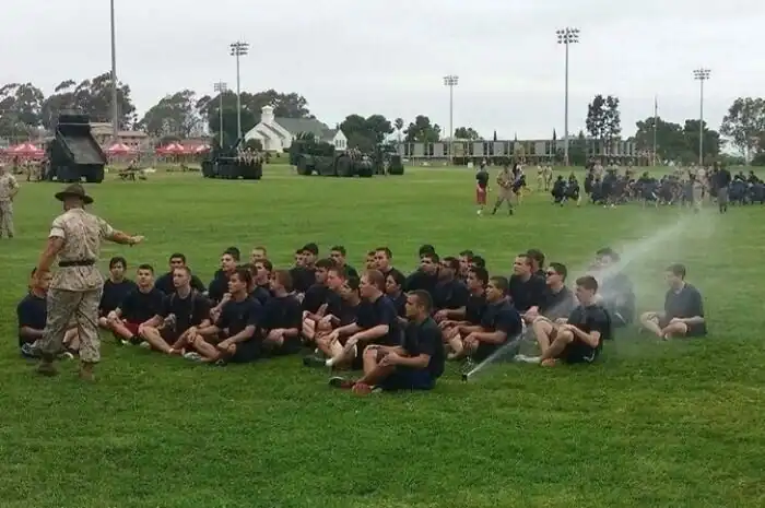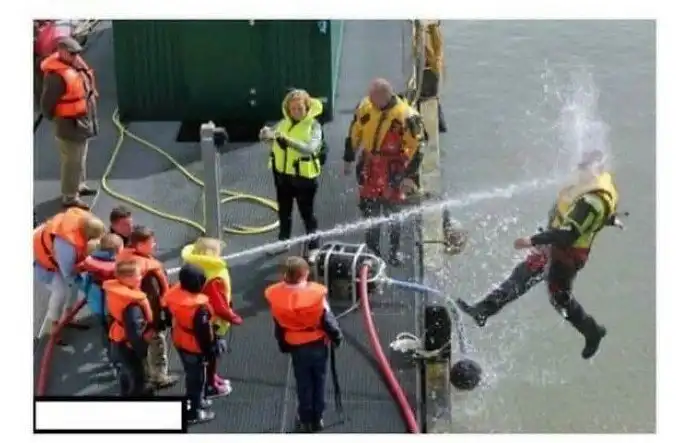Сотрудник береговой охраны показывает детям, как работает водяная помпа... ой, простите, коллега!