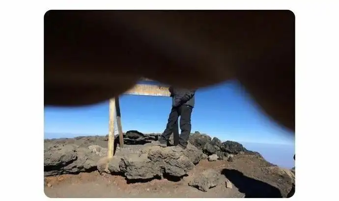 "Мой коллега взял двухнедельный отпуск и уехал в Африку, чтобы забраться на Килиманджаро. Он упорно шел в гору целую неделю, и наконец, на вершине попросил гида снять его, пока телефон не сел на 25-градусном морозе. Вот он, этот снимок