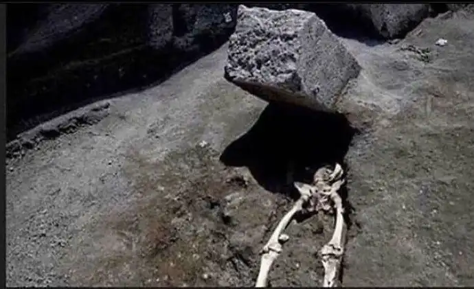 Еще один скелет найден в Помпеях. Этот человек убегал от извержения, когда 300-килограммовый булыжник прилетел ему прямо в голову