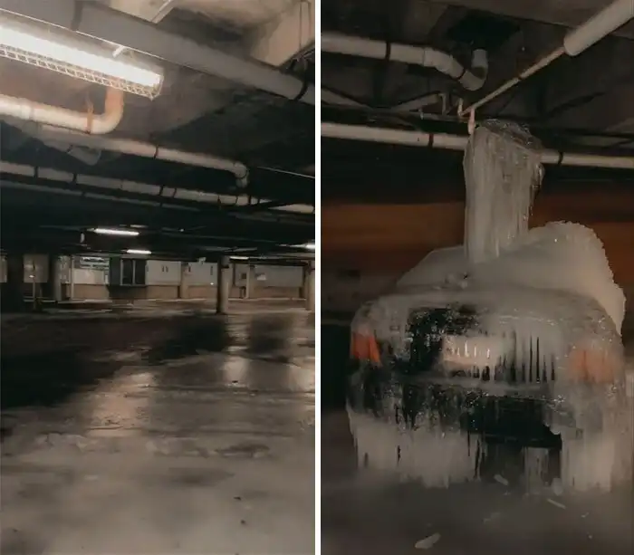 В сезон дождей в Мумбаи на стоянке произошел провал грунта. Это надо же было так точно поставить машину!