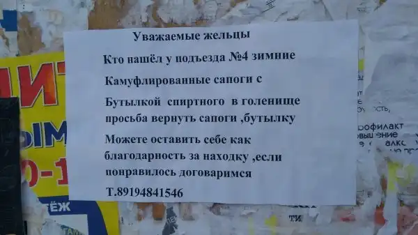 Казалось бы, объявления на столбах - это уже прошлый век, ведь уже давно существует интернет. Но так считают лишь дилетанты, ведь объявления на улицах - это искусство, а не просто какие-то белые листочки с циферками и буковками. Пользователям сети решили поделиться фотографиями странных и забавных объявлений, которые им довелось заметить на просторах нашей страны.