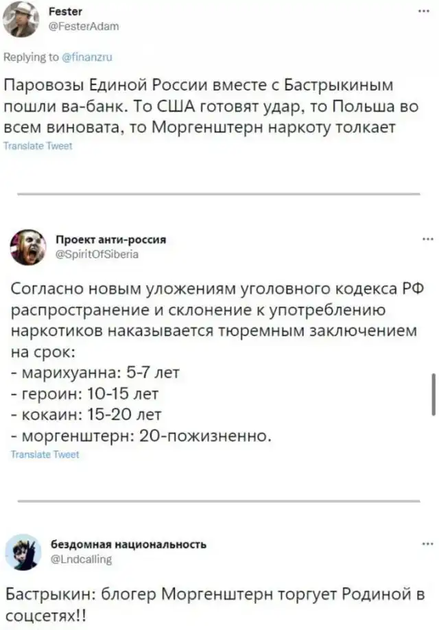 Глава СК высказал опасения по поводу того, что молодежь слушает неправильную музыку, а также указал на самого Моргенштерна - якобы тот торгует наркотиками в интернете.