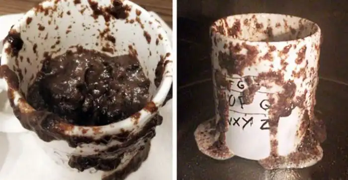 «Решила сделать пирожное в кружке в микроволновке. И вот результат»