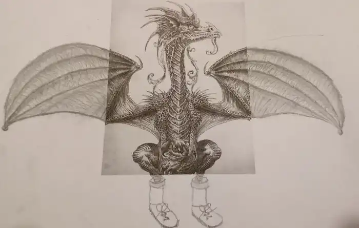 23. "Дочурке дали домашнее задание дорисовать дракону крылья и лапы"