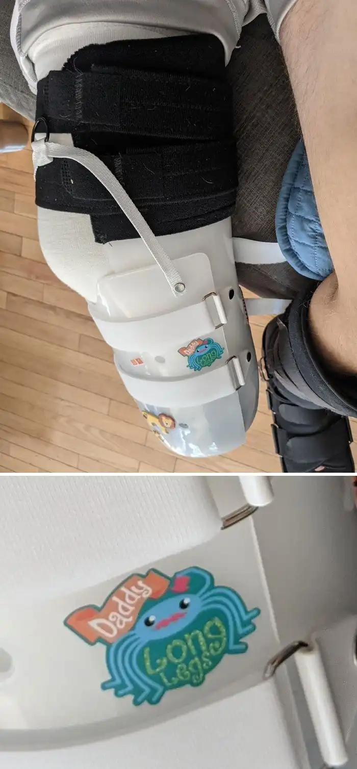 26. "Потерял стопу в результате аварии на мотоцикле. Вот наклейка, которой мой сын решил украсить бандаж"