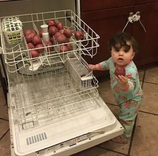 "Мы попробовали мыть картошку в посудомоечной машине - отлично, отмывает сразу целую кучу! Правда, ребенок почему-то удивился"