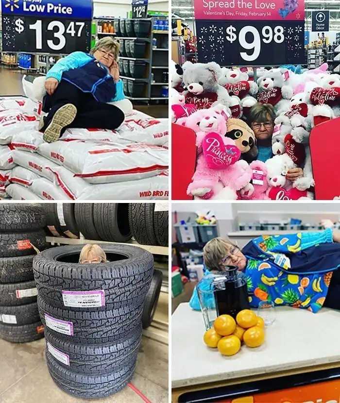 Это Шарлин. Она работает в Walmart и регулярно фотографируется с разной продукцией, выкладывая фото на странице местного магазина в фейсбуке