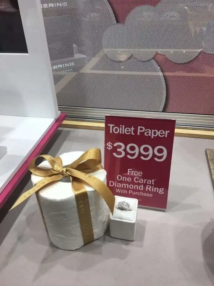 "Туалетная бумага - $3999. При покупке кольцо с бриллиантом в 1 карат - в подарок!"