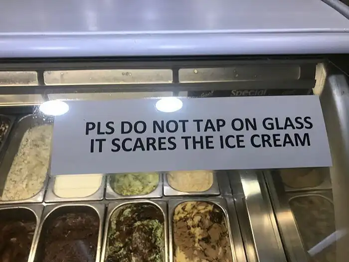 "Пожалуйста, не стучите по стеклу! Вы пугаете мороженое!"
