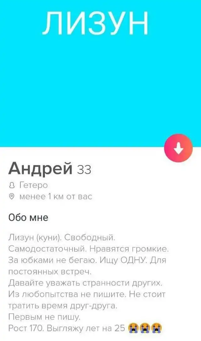 Представьте, что перед вами сотни разных анкет - каждому нужно же как-то выделяться и пытаться завладеть вашим вниманием. Вот они и пытаются, и делаю все для этого. Как девушки, так и мужчины.