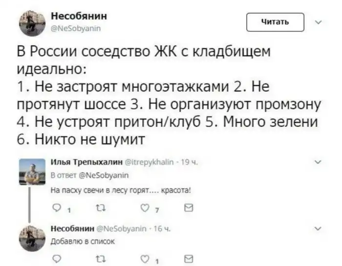 1. В больших городах так все плохо со свободной землей, что застройку ведут впритык к кладбищам