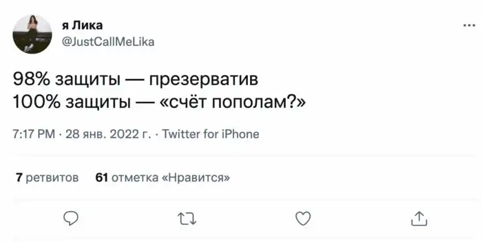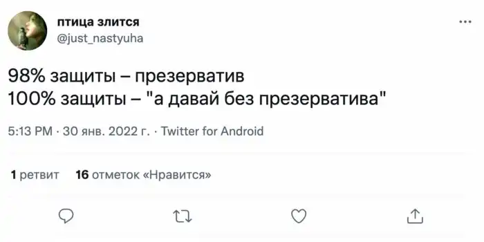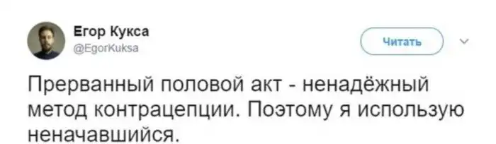 Сегодня предлагается поговорить на очень взрослую и серьезную тему. Да, речь пойдет про контрацепцию. О классических способах предотвращения нежелательной беременности знают все, но время не стоит на месте, поэтому нужно соответствовать современным реалиям. Пользователи Твиттера немного пофантазировали на данную тему.