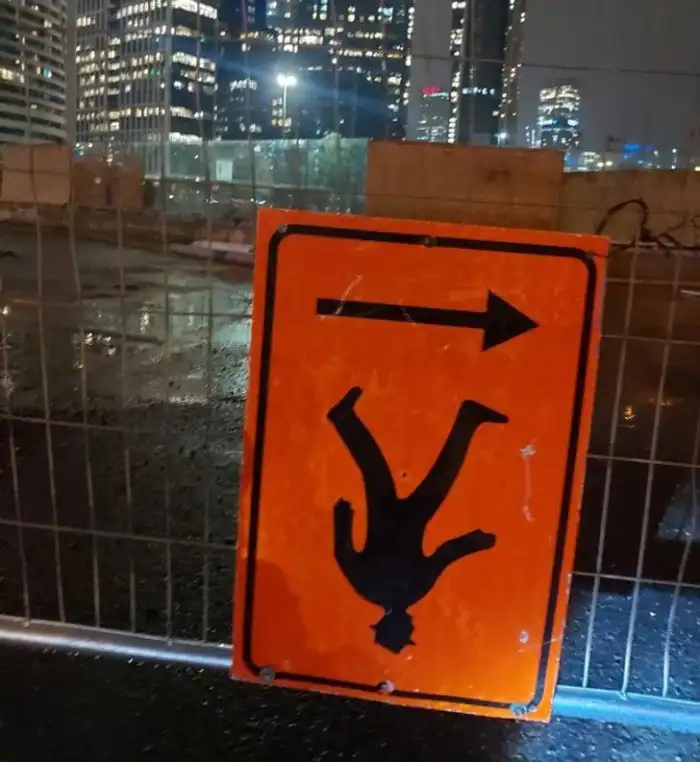 Знак: «Тем, кто умеет стоять на голове, проходить направо»
