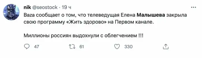 10. Личные рейтинги Елены Малышевой обрушились - это факт