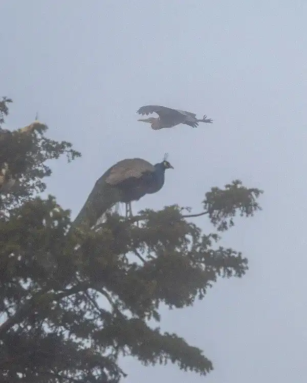 "Я хотела сфотографировать павлина, но тут мимо неожиданно пролетела цапля"